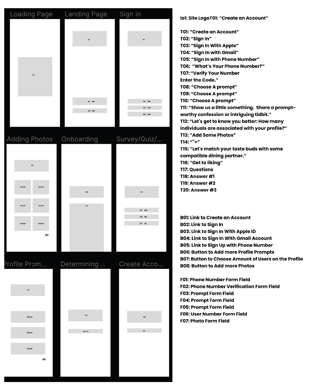 I continued with the design process by creating mid-fi wireframes. My goal with creating these was to bridge my abstract ideas into a more refined, and functional design within Figma.